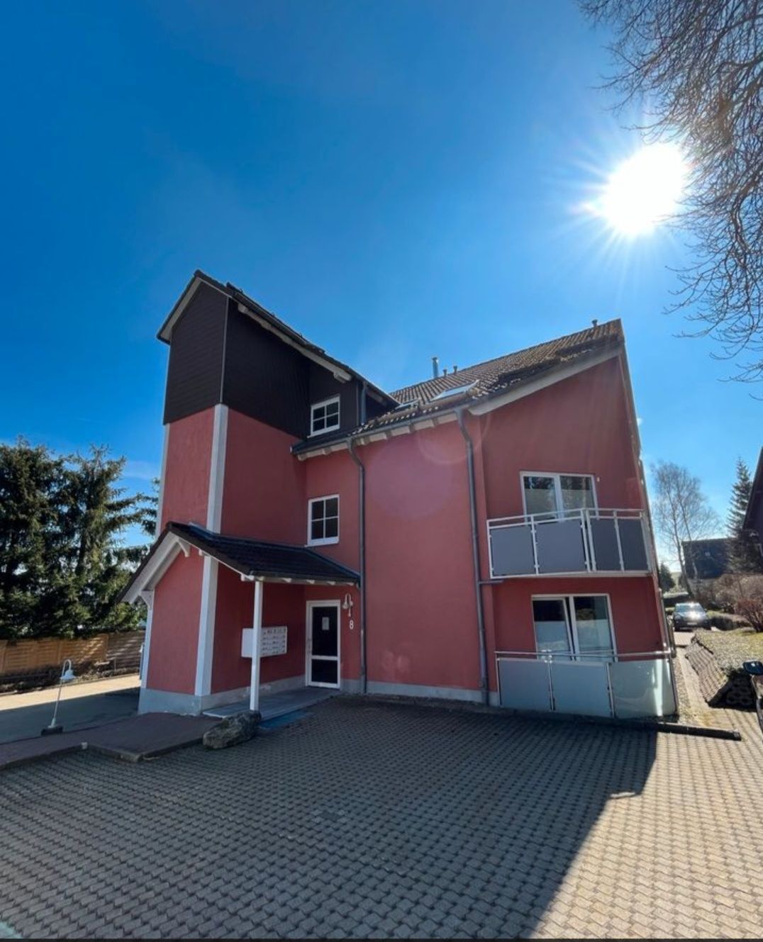 Ein Stellplatz ist direkt vor dem Haus für Sie verfügbar.